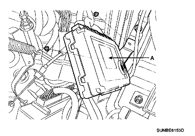 3. Remove the body control module (A) after loosening 2 nuts and disconnecting connector.