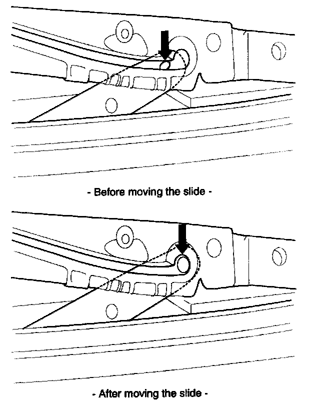3. After moving the slide 5mm forward, turn OFF the switch and push the UP switch (Keeping on pushing the switch with continuous operation)