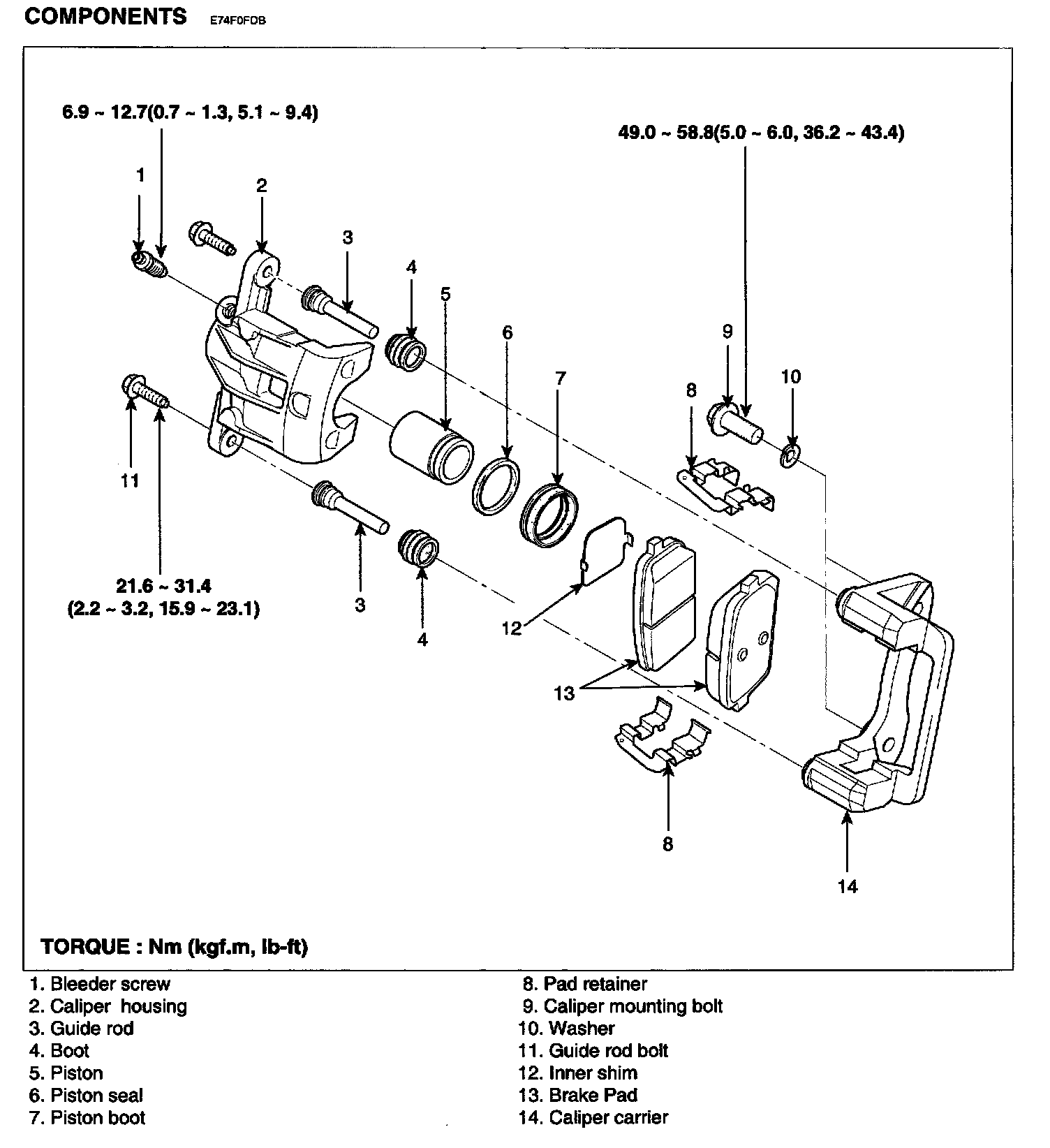 10. Bleed the brake system. (Refer to "Bleeding of brake system")