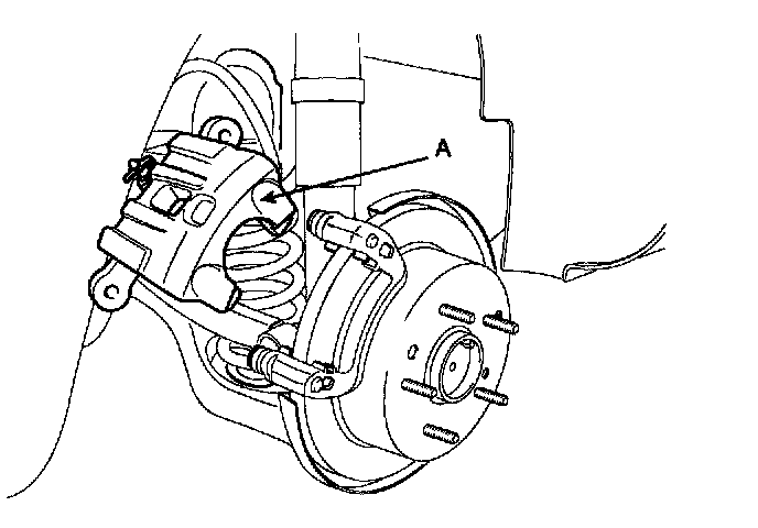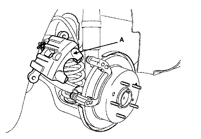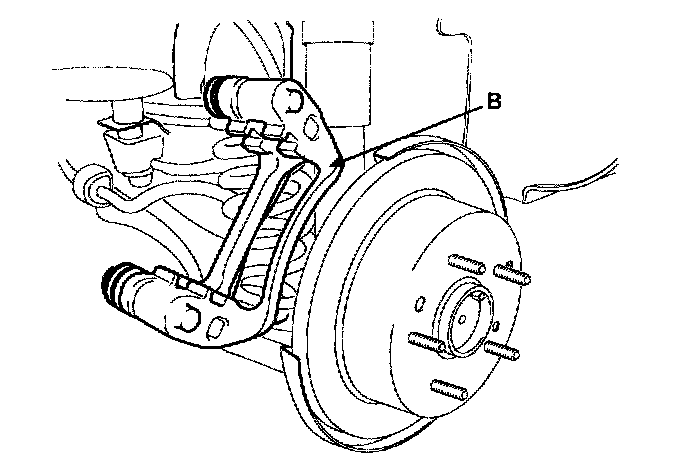 1. Remove guide rod bolt (B) and raise the caliper assembly (A).