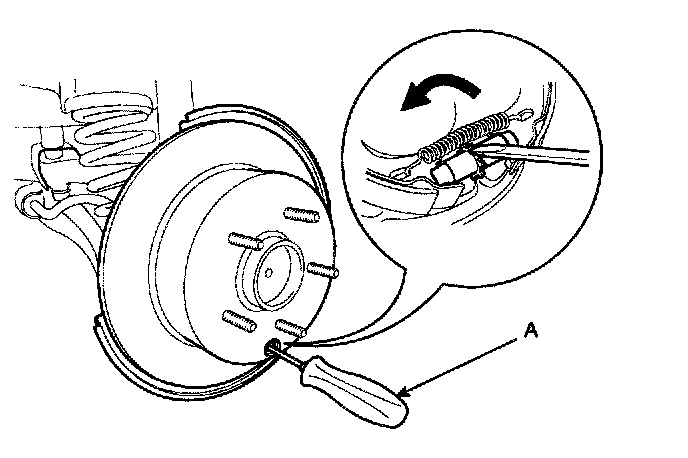4. Rotate the toothed wheel of adjuster by a screw driver until the disc is not moving, and then return it by 5 notches in the opposite direction.