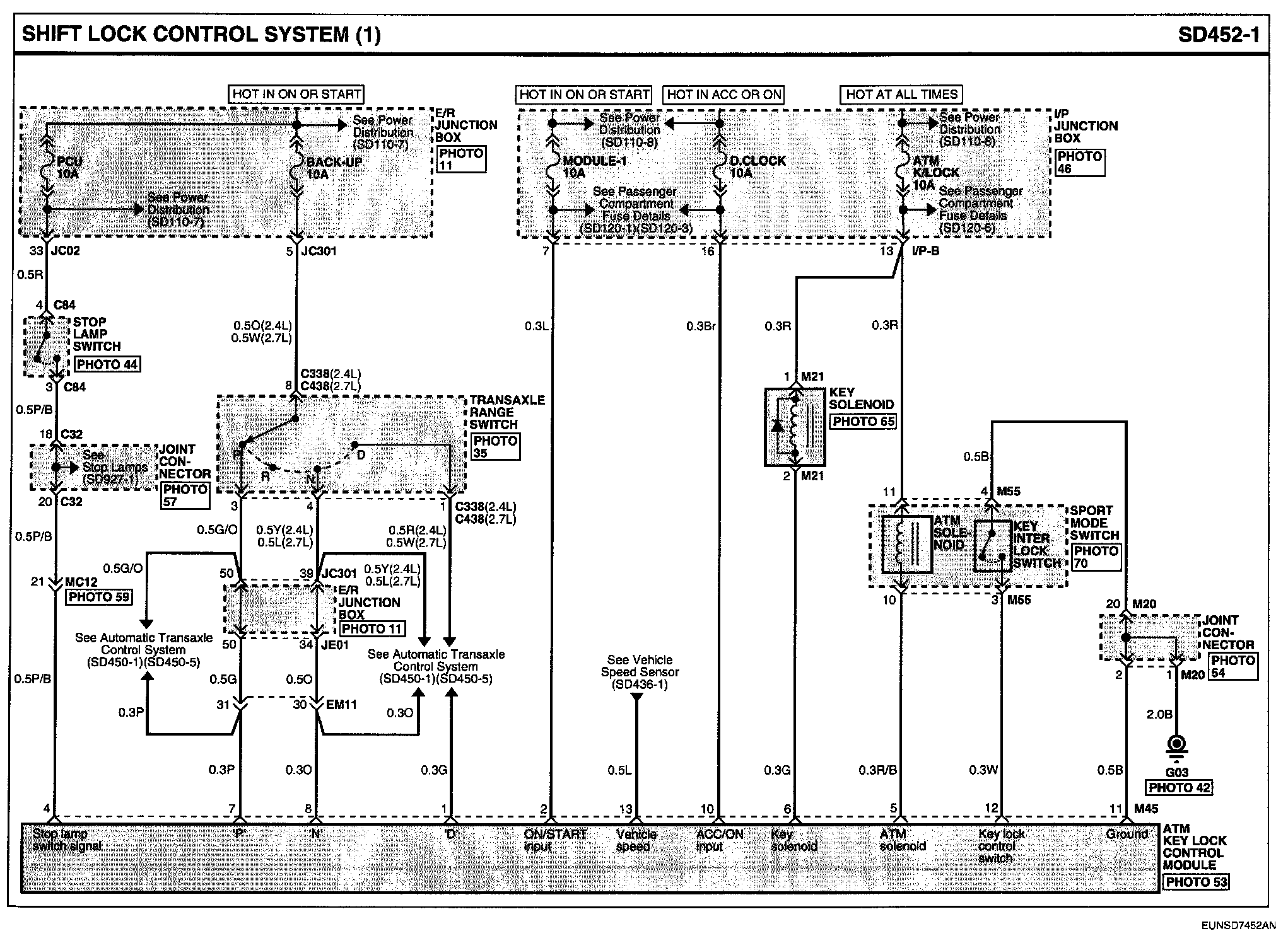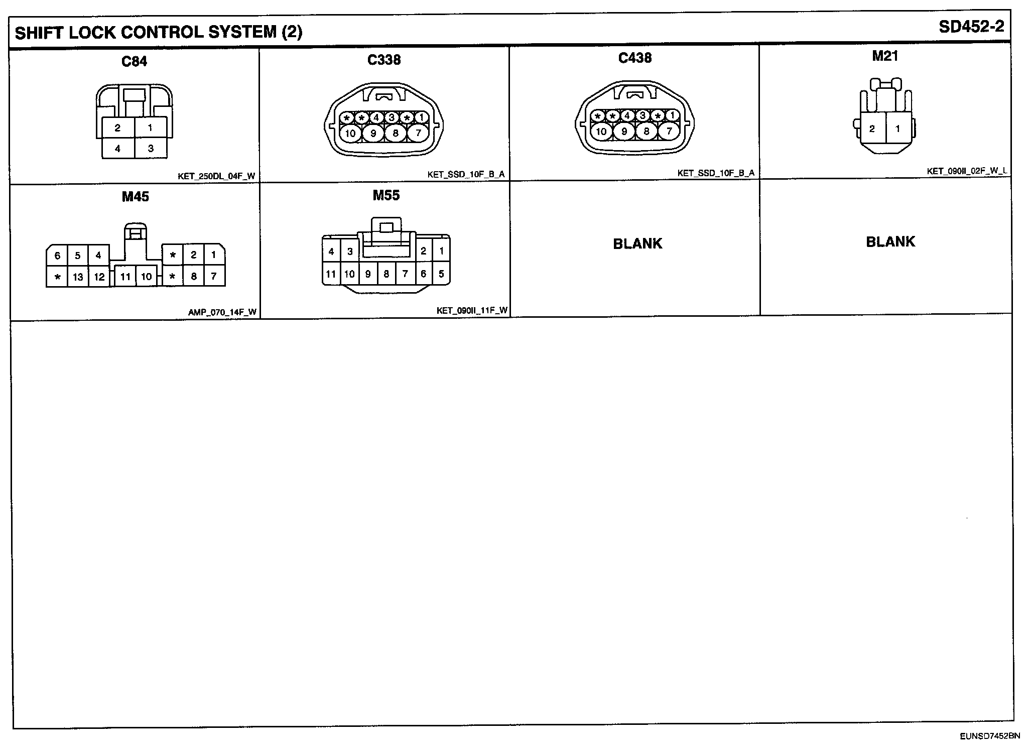 Shift Lock Control System Connector Pin Outs: