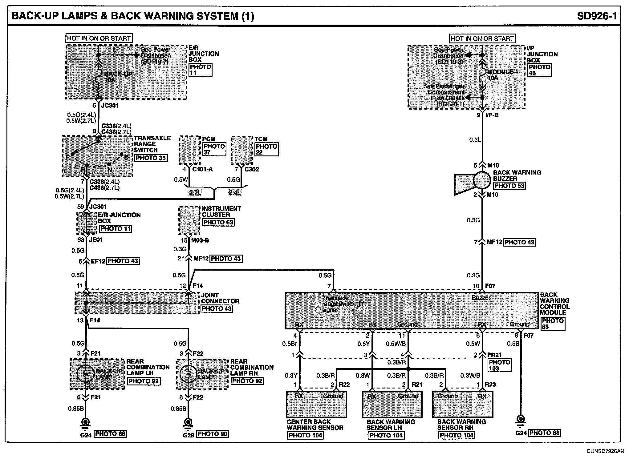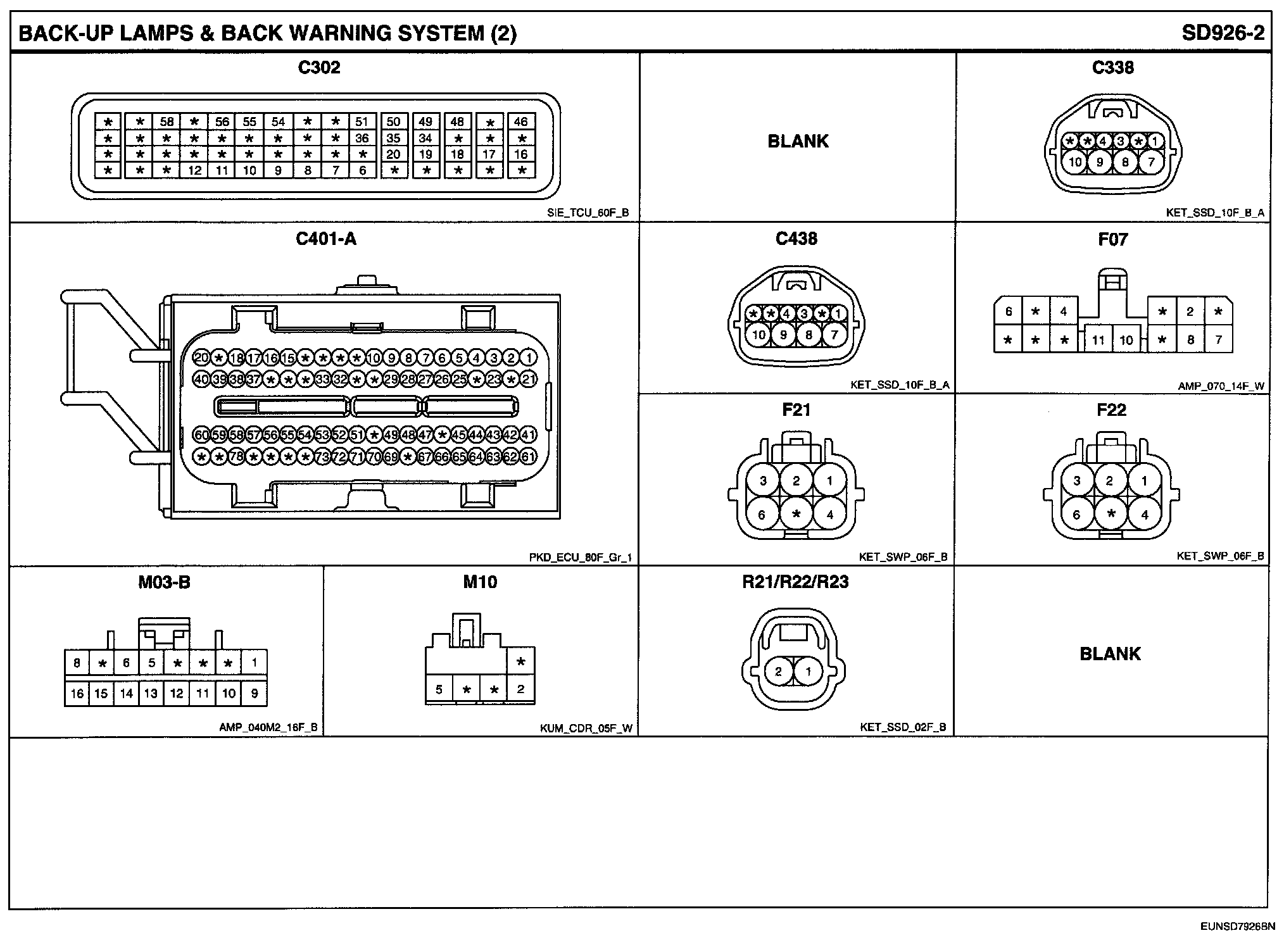 Back-Up Lamps & Back Warning System Connector Pin Outs:
