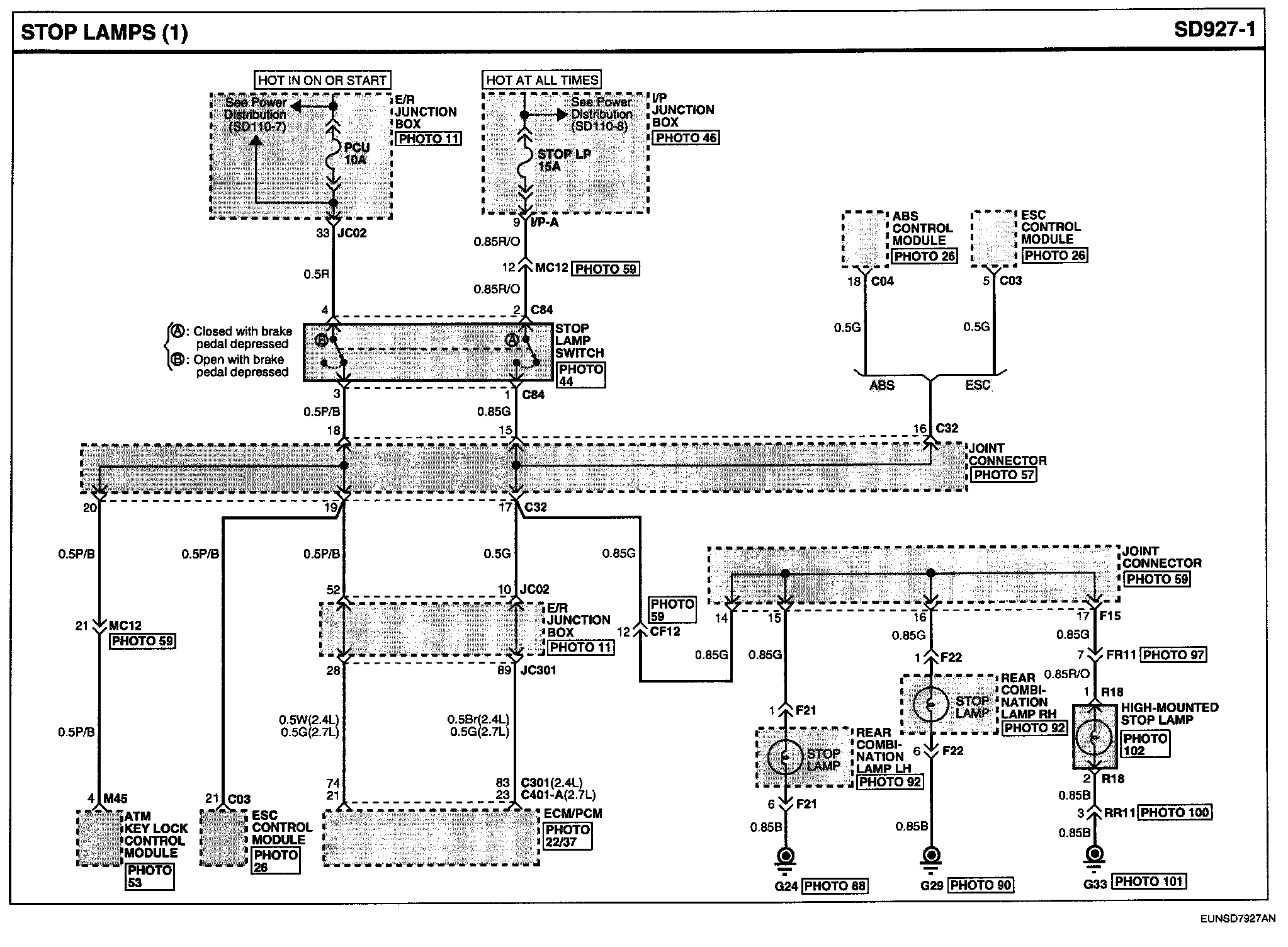 Locations: Location photographs (references to PHOTOS) referred to within these diagrams can be found via the photo number at the vehicle level under Locations by Photo Number. Component Locations