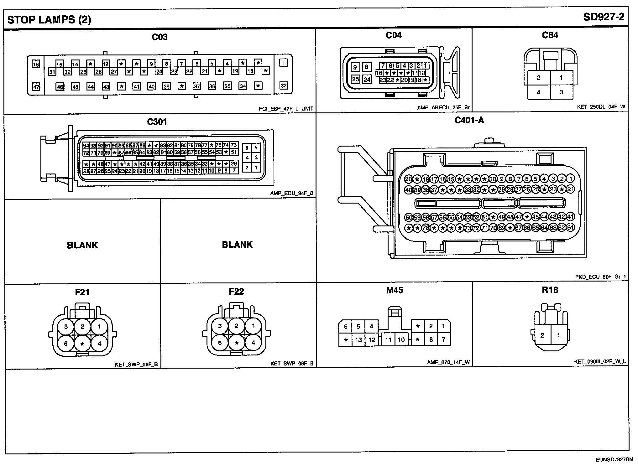 Stop Lamps Connector Pin Outs: