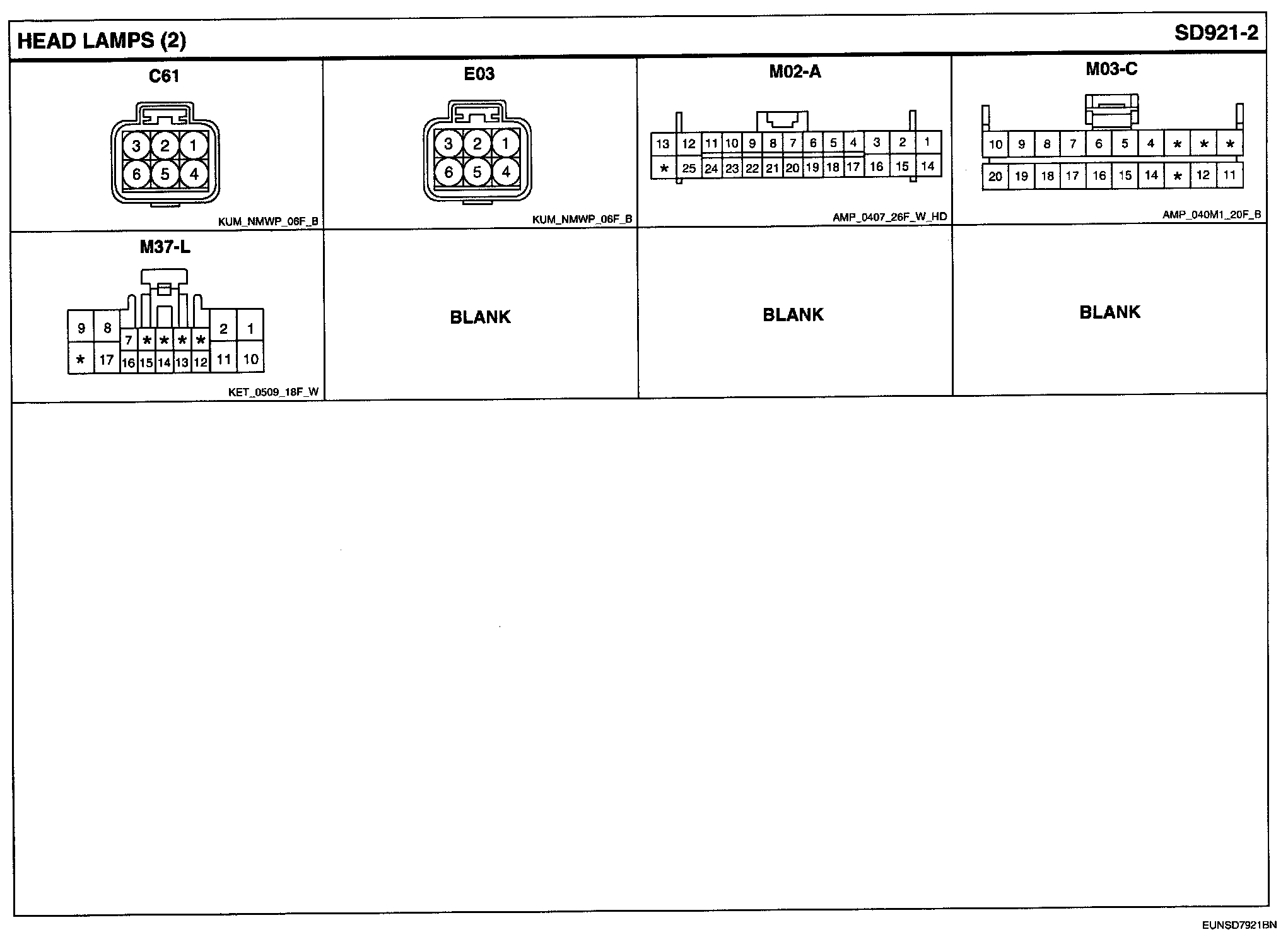 Head Lamps Connector Pin Outs: