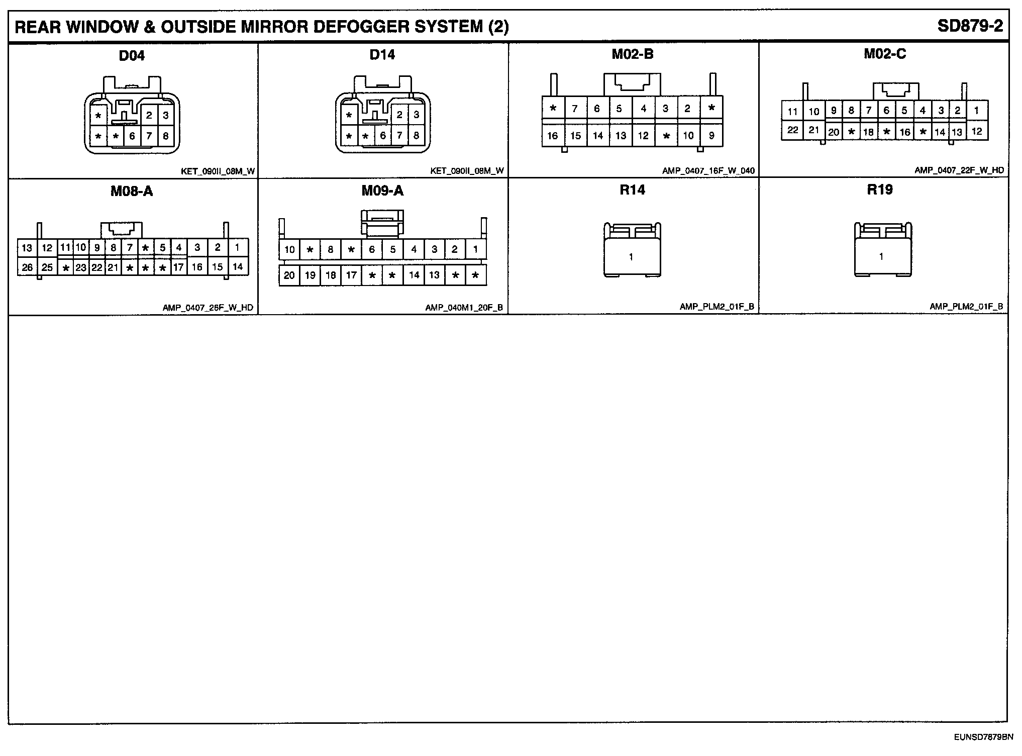 Rear Window & Outside Mirror Defogger System Connector Pin Outs: