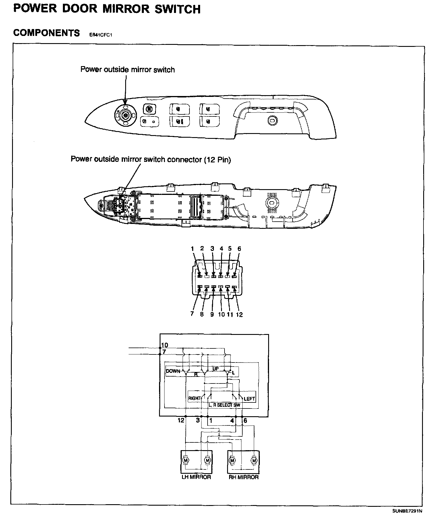 Power Door Mirror Switch - Components: