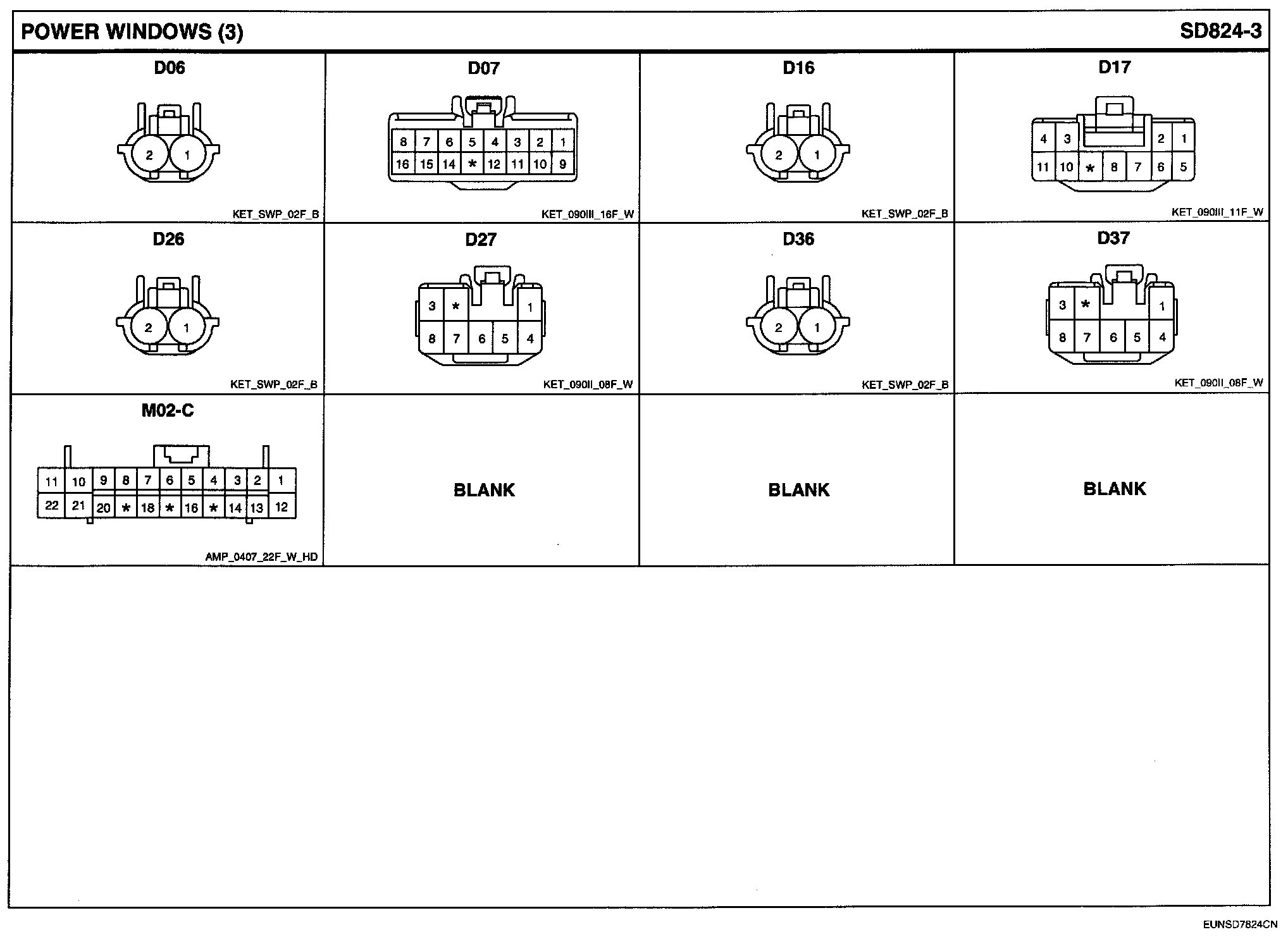 Power Windows Connector Pin Outs: