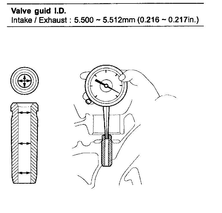 1) Using a caliper gauge, measure the inside diameter of the valve guide.