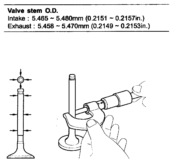 Intake/Exhaust: 32.000 - 32.025mm(1.2598 - 1.2608in.)