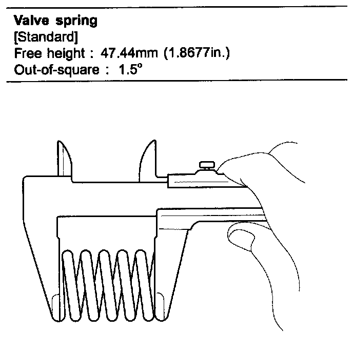2) Using a vernier calipers, measure the free length of the valve spring.