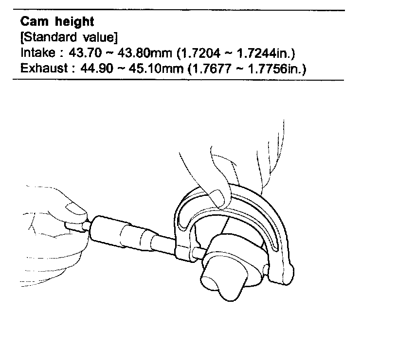 1. Inspect cam lobes. Using a micrometer, measure the cam lobe height.