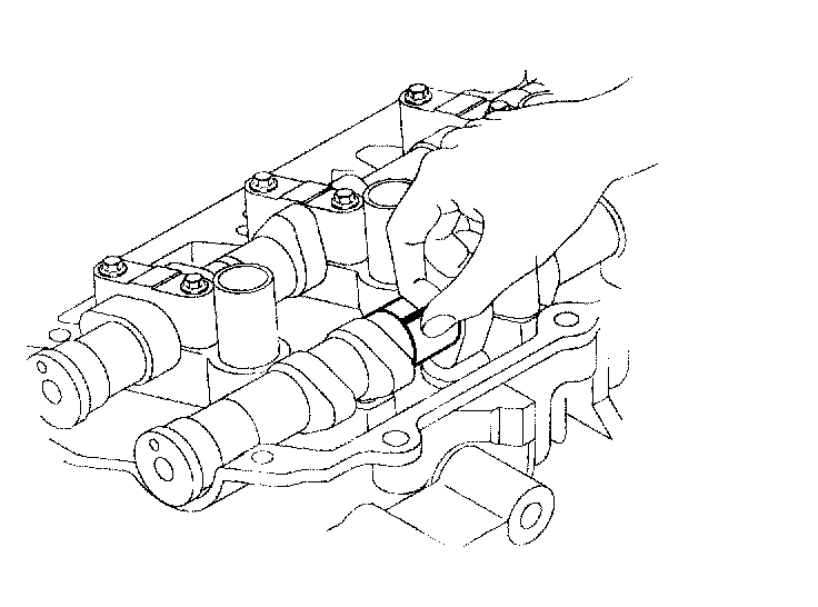 3) Lay a strip of plastigage across each of the camshaft journal.