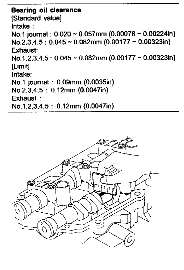 If the oil clearance is greater than maximum, replace the camshaft. If necessary, replace cylinder head.