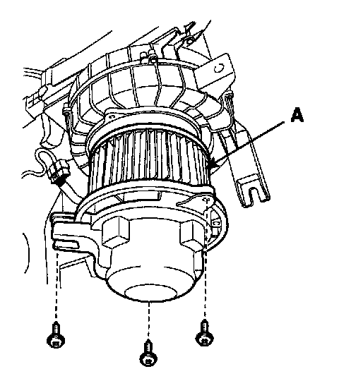 3. Remove the blower motor (A) after loosening the mounting screws.