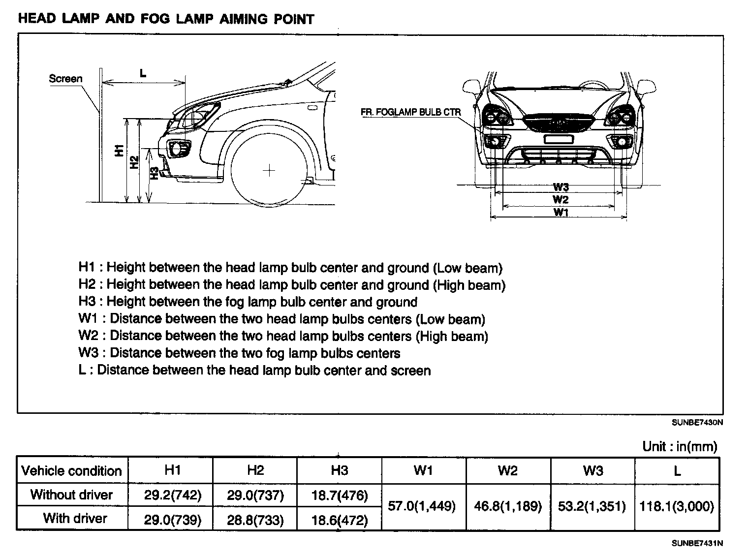 Head Lamp And Fog Lamp Aiming Point: