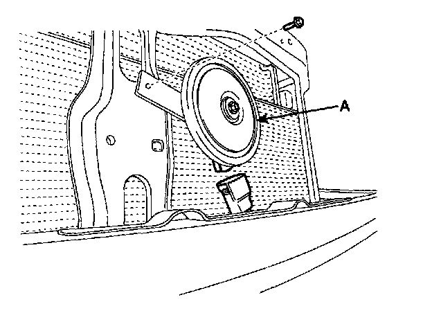 2. Remove the bolt and disconnect the horn connector, then remove the low pitch horn (A).