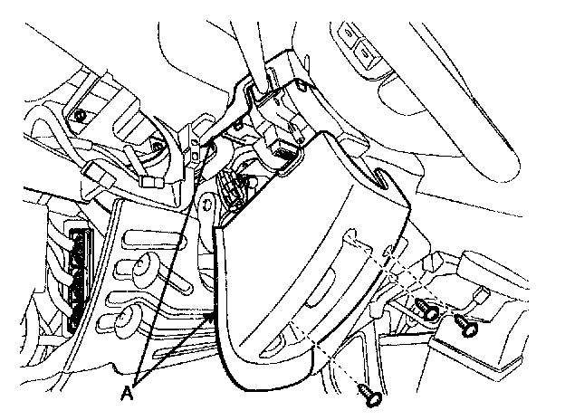 2. Remove the steering column upper and lower shrouds (A) after removing 3 screws.