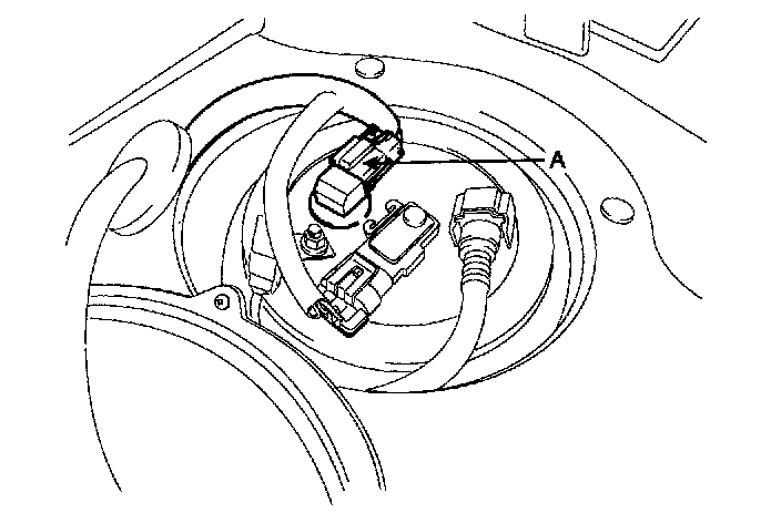 3. Disconnect the fuel pump connector (A).