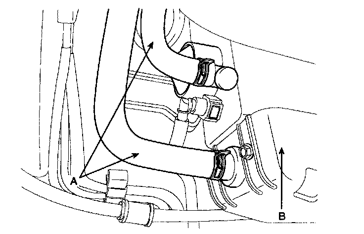 6. Disconnect the vacuum hoses (A) from the canister (B).