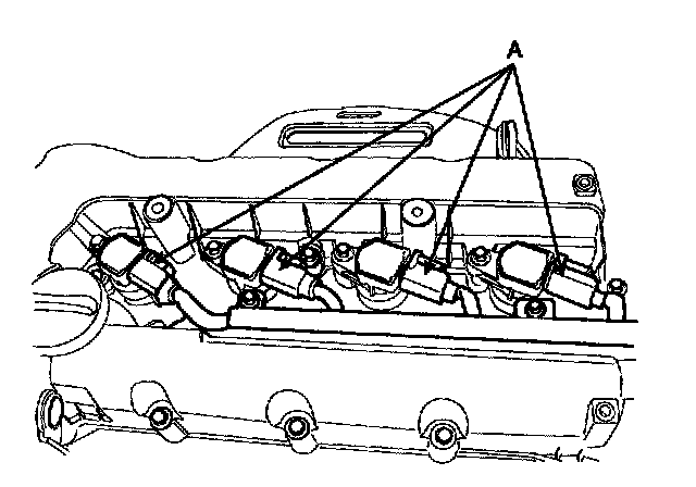 2) Disconnect the P.C.V hose(A) and the breather hose from the cylinder head cover.