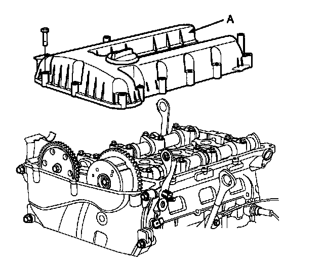 3) Loosen the cylinder head cover bolts and then remove the cover(A) and gasket.