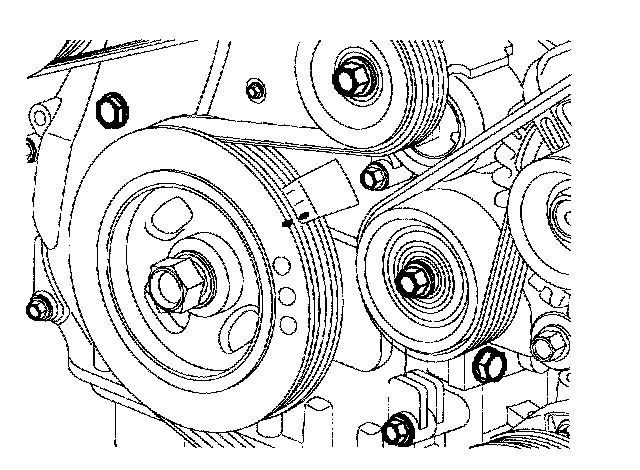 2) Turn the crankshaft pulley one revolution (360°) and align the groove with timing mark "T' of the lower timing chain cover.