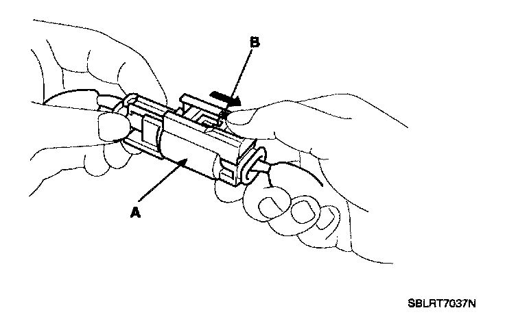 To release the lock, pull the spring-loaded sleeve (A) and the slider (B), while holding the opposite half of the connector. Pull the connector halves apart. Be sure to pull on the sleeve and not on the connector half.