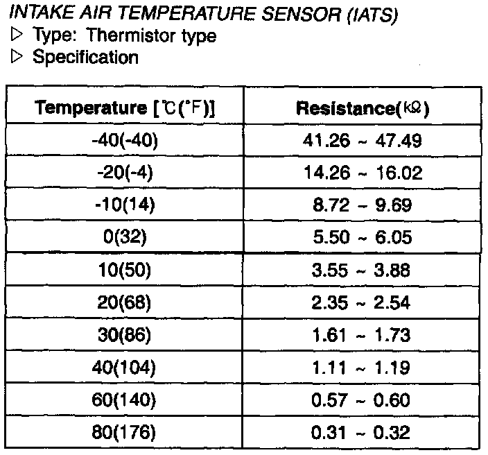 Intake Air Temperature Sensor (IATS) - Specification: