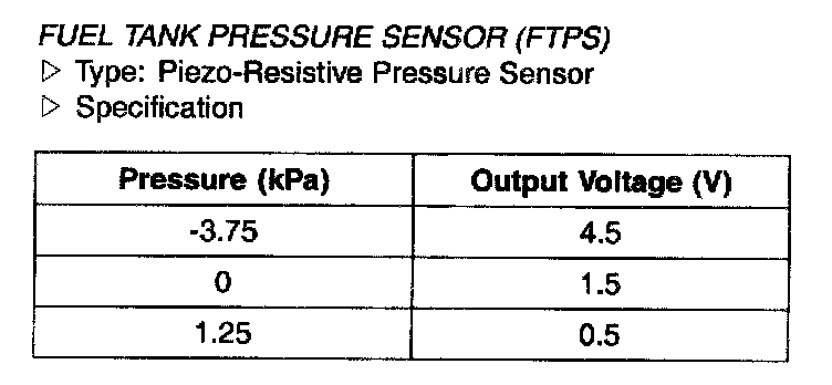 Fuel Tank Pressure Sensor (FTPS) - Specification: