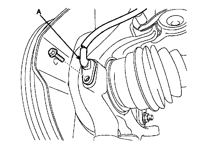 9. Install the wheel speed sensor (A) to the knuckle.