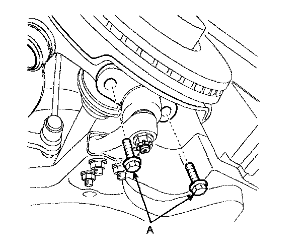 6. Remove the ball joint assembly mounting bolt (A) from the knuckle.