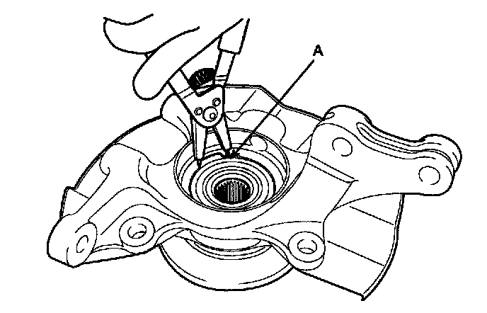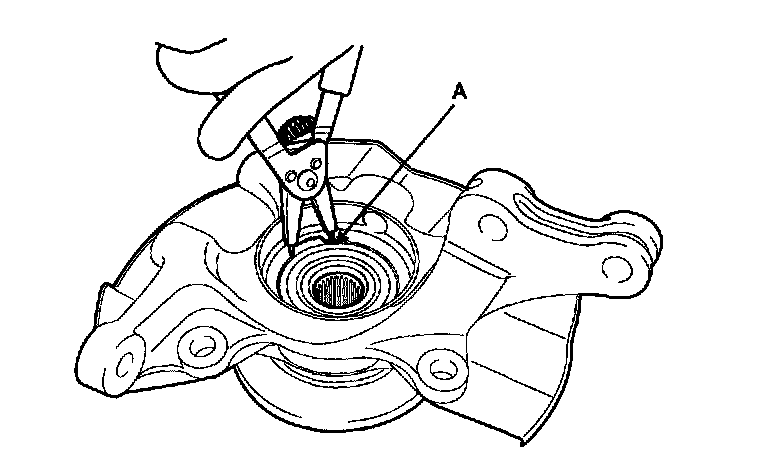 1) Install a suitable tool (A) for removing the hub bearing inner race on the hub assembly.