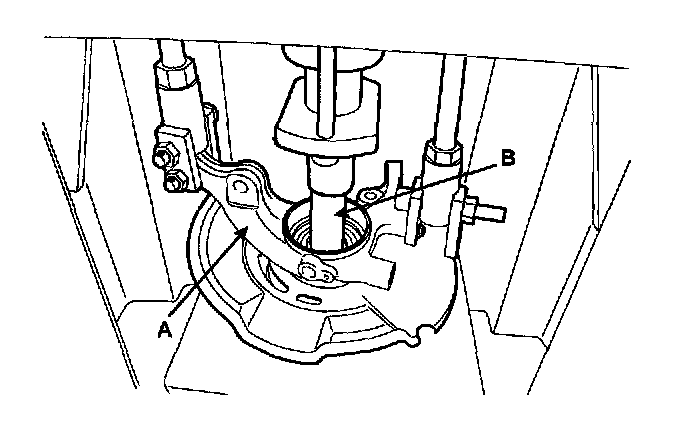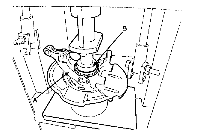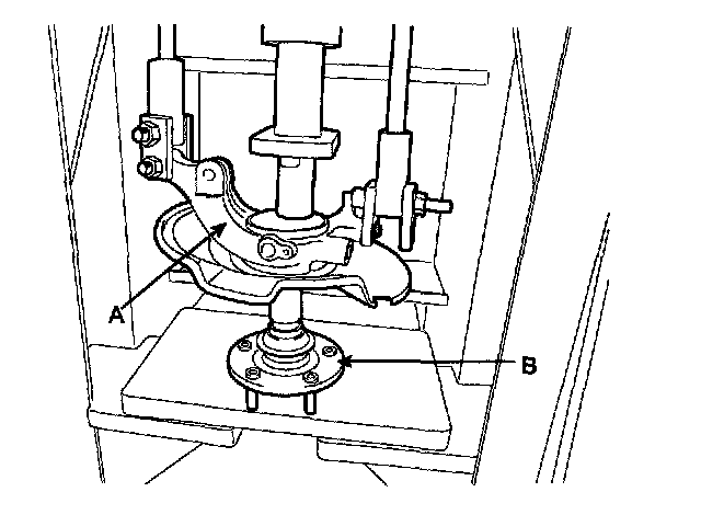 3) Remove the hub assembly (B) from the knuckle assembly (A) by using press.
