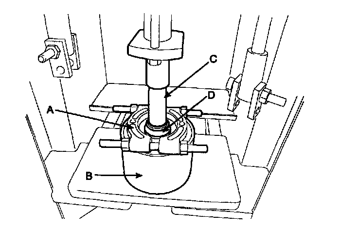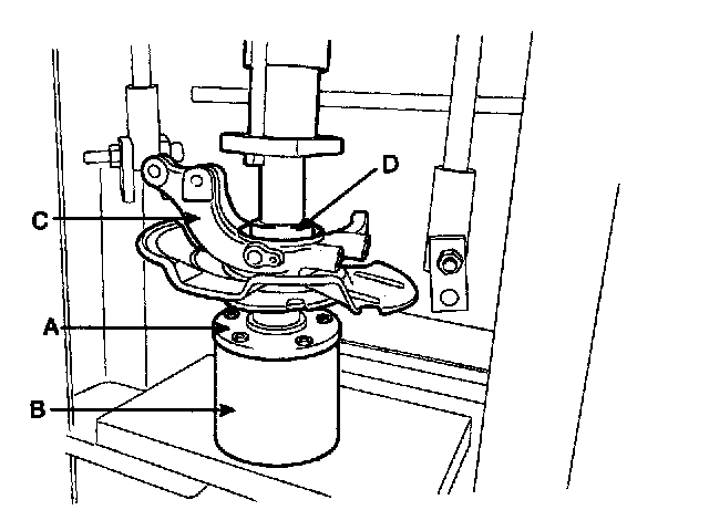 1) Lay the hub assembly (A) upon a suitable adapter (B).