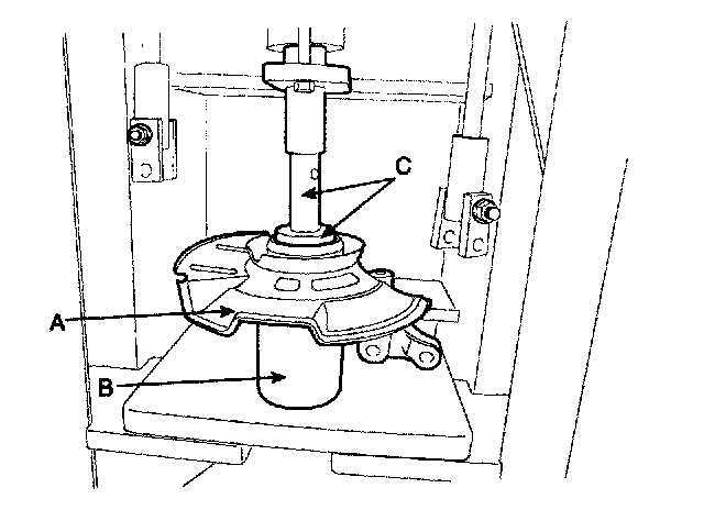 2) Lay a suitable adapter (C) upon the hub bearing outer race.