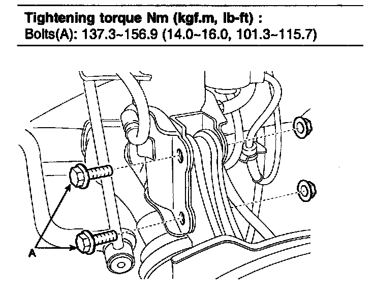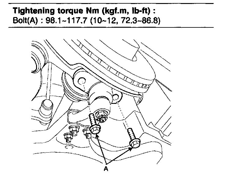 2. Install the knuckle to the strut assembly and tighten mounting bolts (A) and nuts.