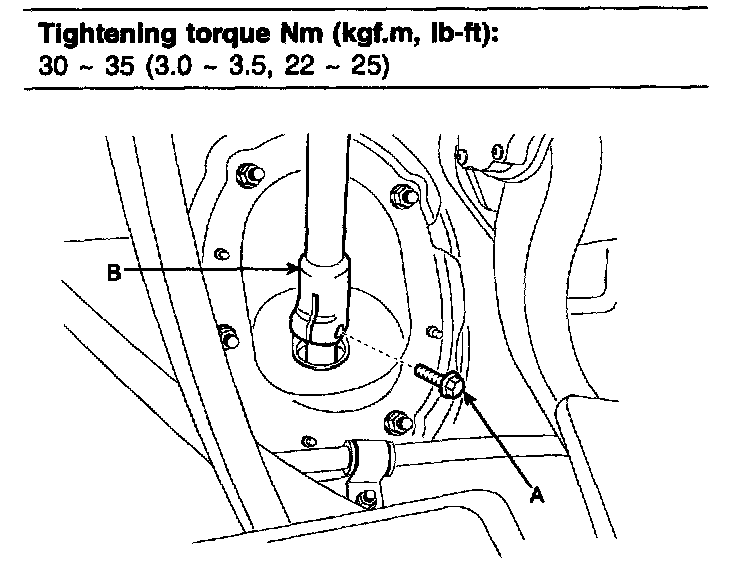 Tightening torque Nm (kgf.m, lb-ft): 40 - 50 (4.0 - 5.0, 29 - 36)