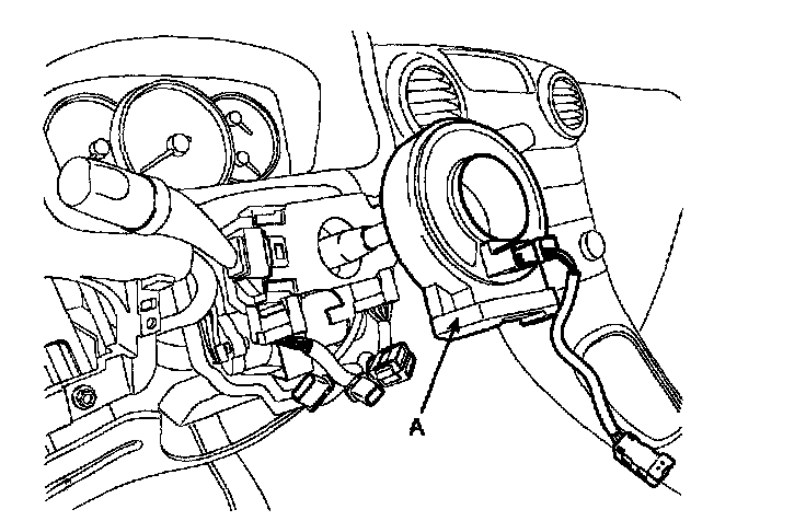 6. Install the clock spring (A) to steering column assembly and then connect the connectors.