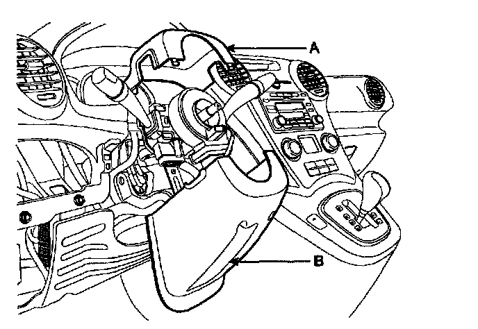 7. Install the steering column upper and lower shroud (A, B).