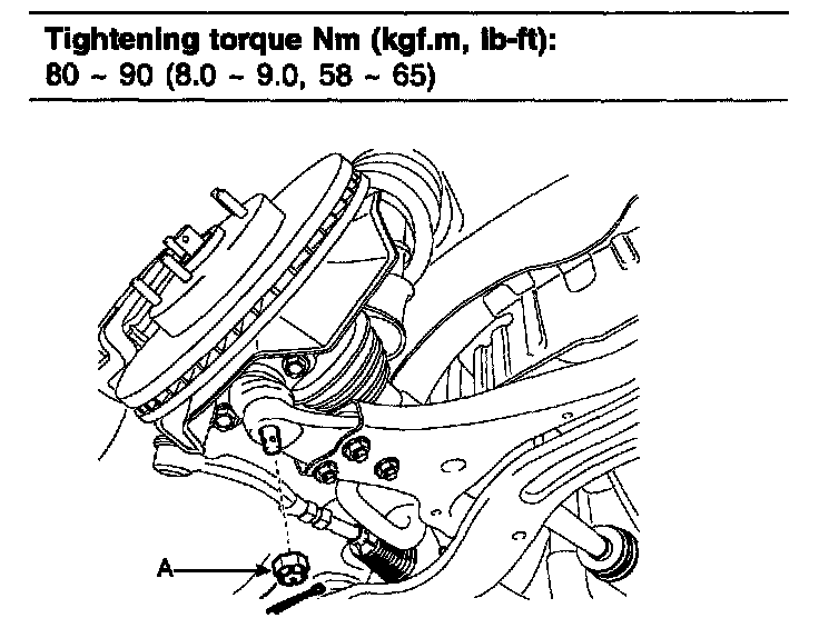Tightening torque Nm (kgf.m, lb-ft): 90- 110 (9.0 - 11.0, 65 - 80)