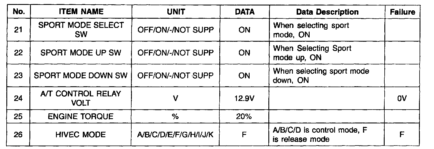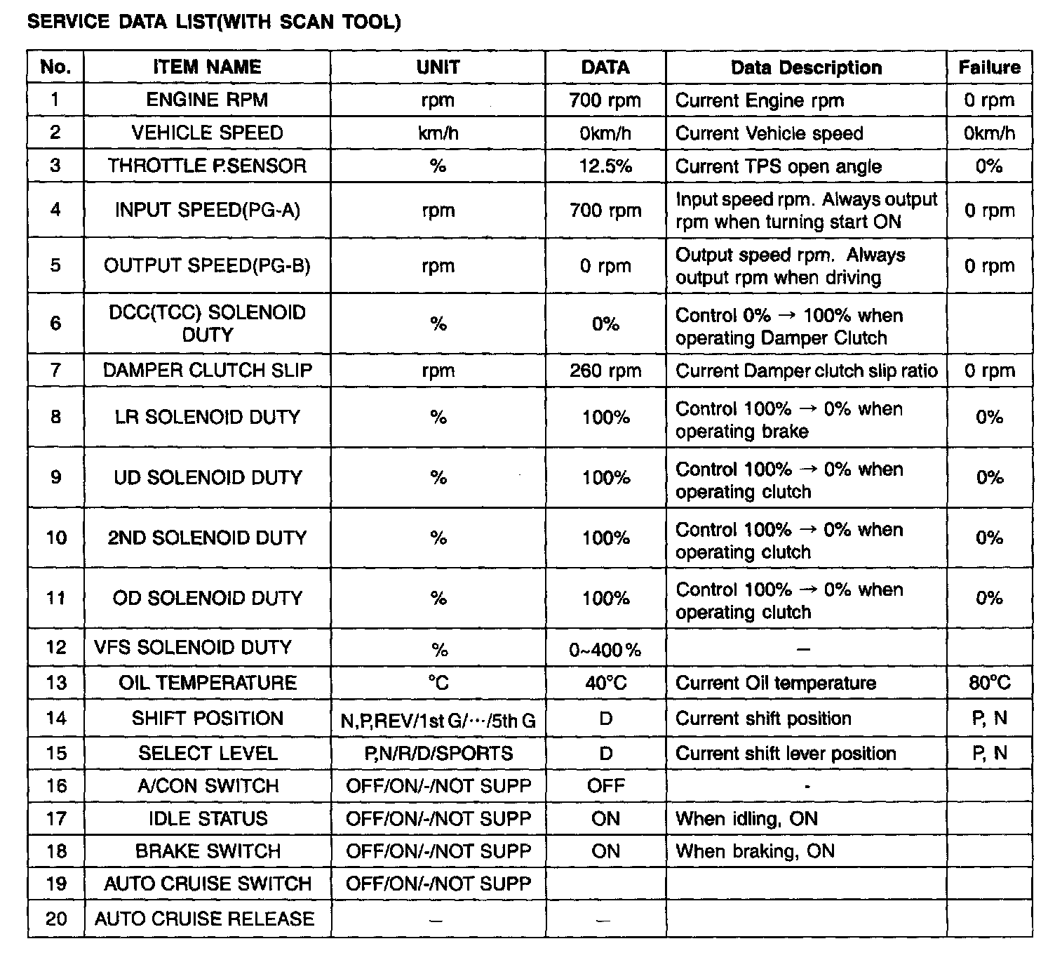 SERVICE DATA LIST(WITH SCAN TOOL)