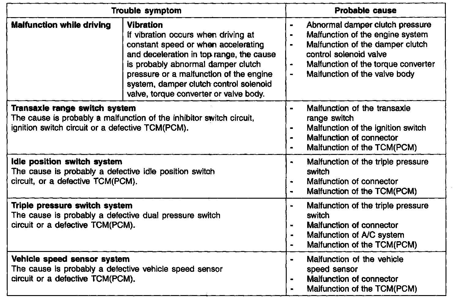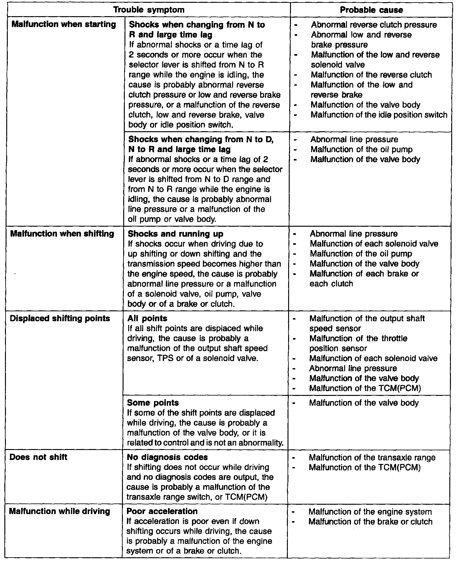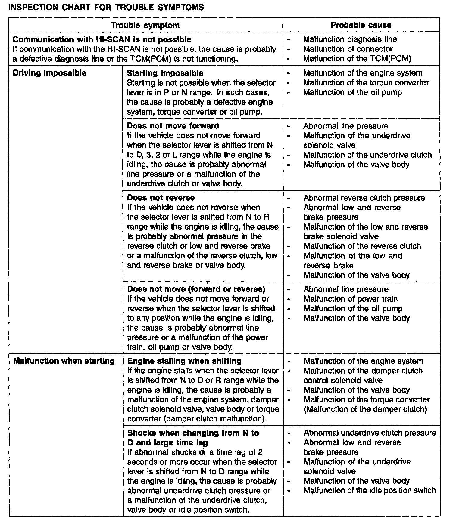 INSPECTION CHART FOR TROUBLE SYMPTOMS