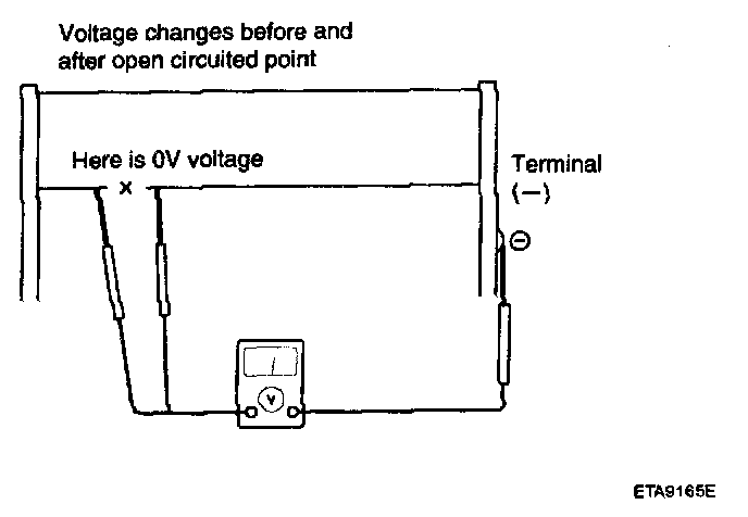 3. If a heater line is burned out between the center point and (-) terminal, the voltmeter will indicate 0 V.