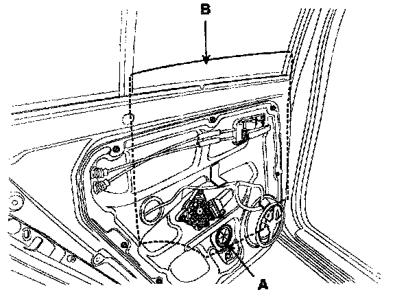 5. Carefully move the glass (A) until you can see the clip, then loosen them. Separate the glass from the glass run and carefully pull the glass out through the window slot.