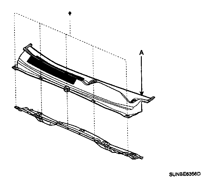 2. Remove the weather strip and the cowl top cover (A) after removing 5 rivets.