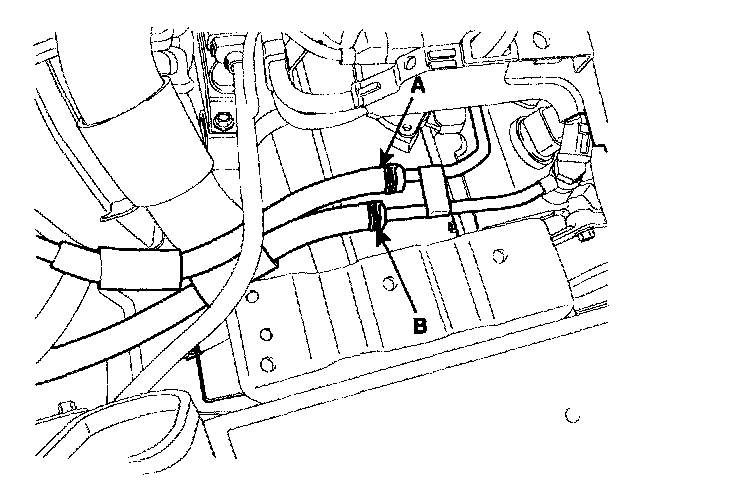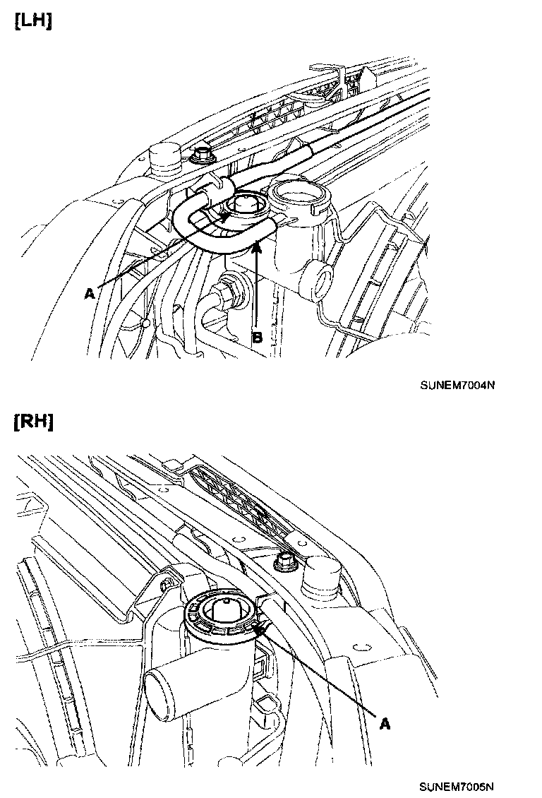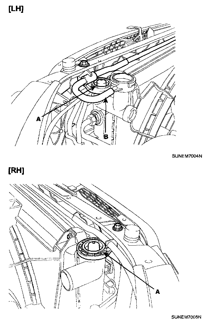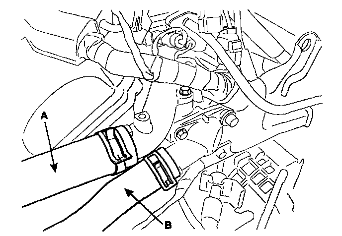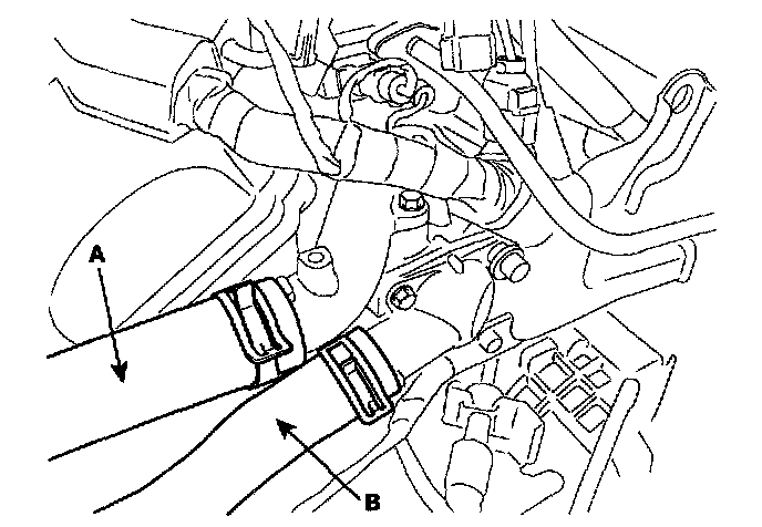 4. Remove the upper radiator hose(A) and lower radiator hose(B).