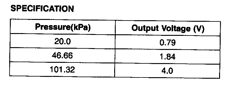 Manifold Absolute Pressure Sensor (MAPS) is speed-density type sensor and is installed on the surge tank. This MAPS senses absolute pressure in surge tank and transfers this analog signal proportional to the pressure to the PCM. The PCM calculates the intake air quantity and engine speed based on this signal. This MAPS consists of piezo-electric element and hybrid IC that amplifies the element output signal. The element is silicon diaphragm type and adapts pressure sensitive variable resistor effect of semi-conductor. 100% vacuum and the manifold pressure applies to both sides of it respectively. That is, this sensor outputs the silicon variation proportional to pressure change by voltage.