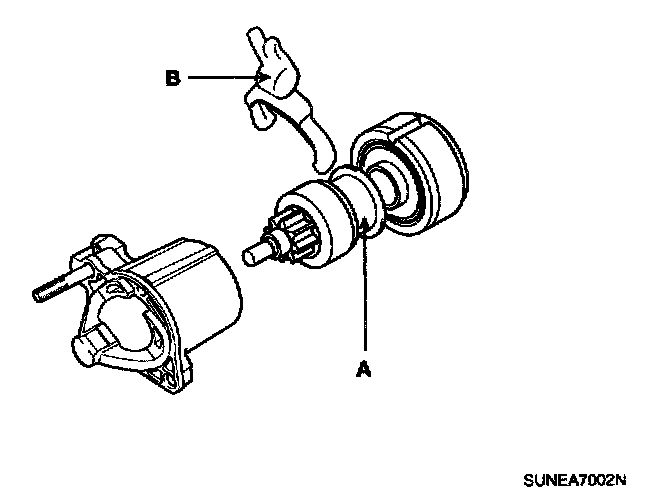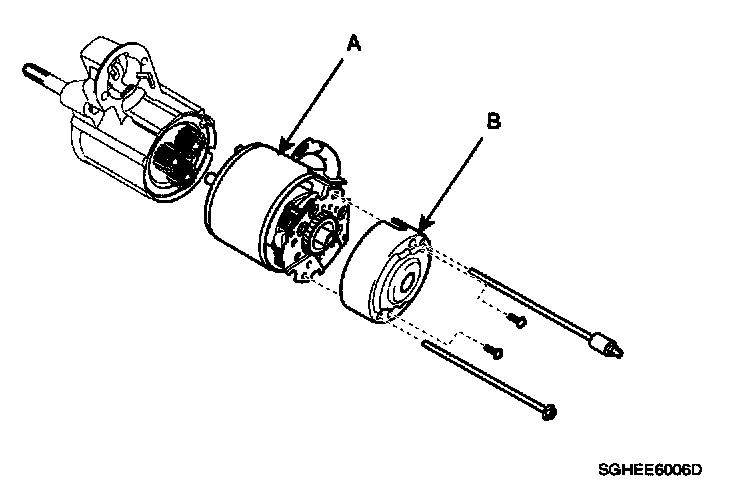 1. Disconnect the M-terminal (A) on the magnet switch assembly (B).